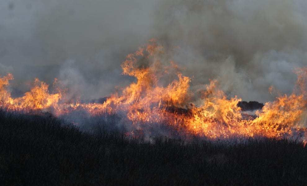 Heading back from the heather, curlews called on and more palls of smoke poured from the slopes like the haze of day, warm and homely in the sunlit moss with the lights of a fire engine blinking in the distance, and a recollection that not everybody finds so much to love in the sight of a freshening flame.