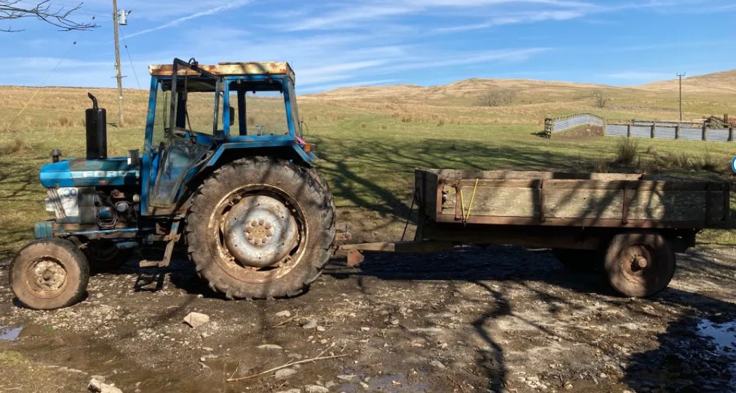 I usually drive a big blue truck along this road, and people are free to wave or ignore me as they choose. It’s a distinctive vehicle, but slip inside a borrowed Ford tractor and even your best friend can hardly make head nor tail of you. I watched my neighbour squinting into the cab, trying to see who was driving. I made to wave, but instead the sun’s reflection flashed on the glass cab and left him wondering. Then at the loch-head I came down amongst a parked up arrangement of shepherds. I’d usually stay for a chat, but I find it hard to restart this tractor when it stops, so I blew by and yelled and they failed to decipher me. One of them waved for fear of not waving, but the others doled out that expression of quiet disgust kept ready behind glass to be broken in case of strangers.